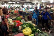 Dua musisi jalanan mengenakan pelindung wajah saat mengamen di Pasar Tradisional Petisah Medan, Sumatera Utara, Jumat (17/7/2020). Mereka terpaksa mengamen berkeliling karena sepinya permintaan jasa menyanyi untuk acara dan pesta perkawinan akibat pandemi COVID-19. ANTARA FOTO/Septianda Perdana/aww.
