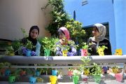 Sejumlah remaja Palestina merawat tanaman dalam gelas plastik bekas di Pusat Anak-Anak Al-Qattan di Gaza City (20/7/2020). Anak-anak Palestina belajar bagaimana memanfaatkan kembali botol plastik dan wadah plastik bekas untuk dekorasi taman dalam program daur ulang limbah rumah tangga menjadi produk yang ramah lingkungan. ANTARA/XINHUA/Rizek Abdeljawad/aa.