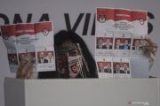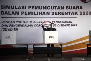 Petugas KPPS menunjukkan contoh surat suara saat simulasi pemungutan suara pemilihan serentak 2020 di Jakarta, Rabu (22/7/2020). Simulasi tersebut digelar untuk memberikan edukasi kepada masyarakat terkait proses pemungutan dan penghitungan suara Pilkada serentak 2020 yang akan dilaksanakan pada 9 Desember 2020 dengan menerapkan protokol kesehatan COVID-19. ANTARA FOTO/Nova Wahyudi/hp.