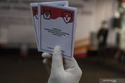 Warga menunjukkan contoh surat suara saat simulasi pemungutan suara pemilihan serentak 2020 di Jakarta, Rabu (22/7/2020). Simulasi tersebut digelar untuk memberikan edukasi kepada masyarakat terkait proses pemungutan dan penghitungan suara Pilkada serentak 2020 yang akan dilaksanakan pada 9 Desember 2020 dengan menerapkan protokol kesehatan COVID-19. ANTARA FOTO/Nova Wahyudi/hp.