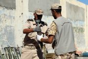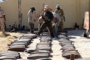 Pasukan pemerintah Libya yang didukung PBB menata sisa-sisa bahan peledak di Al-Hira, sekitar 65 km sebelah barat daya Tripoli, Libya, Rabu (22/7/2020). Kementerian Pertahanan Libya dari pemerintahan yang didukung PBB pada Rabu (22/7) menghancurkan bahan peledak sisa perang dari berbagai daerah konflik di Tripoli selatan. ANTARA FOTO/Xinhua-Hamza Turkia/hp.
