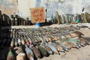 Sisa-sisa bahan peledak terlihat di sebuah kamp militer di Tripoli selatan, Libya, Rabu (22/7/2020). Kementerian Pertahanan Libya dari pemerintahan yang didukung PBB pada Rabu (22/7) menghancurkan bahan peledak sisa perang dari berbagai daerah konflik di Tripoli selatan. ANTARA FOTO/Xinhua-Hamza Turkia/hp.