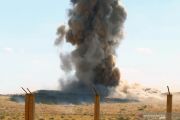 Ledakan sisa-sisa bahan peledak di Al-Hira, sekitar 65 km sebelah barat daya Tripoli, Libya, Rabu (22/7/2020). Kementerian Pertahanan Libya dari pemerintahan yang didukung PBB pada Rabu (22/7) menghancurkan bahan peledak sisa perang dari berbagai daerah konflik di Tripoli selatan. ANTARA FOTO/Xinhua-Hamza Turkia/hp.