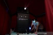 Para operator proyektor bekerja di lokasi acara Pemutaran Film Outdoor Festival Film Internasional Shanghai di Shanghai, China timur, Sabtu (25 Juli 2020) . Festival Film Internasional Shanghai dibuka di Shanghai pada Sabtu (25/7). Untuk pertama kalinya, gelaran ini meluncurkan pemutaran film di luar ruangan (outdoor), yang mencakup tujuh distrik bisnis dan lebih dari 30 komunitas di Shanghai. ANTARA FOTO/Xinhua/Liu Ying/pras.