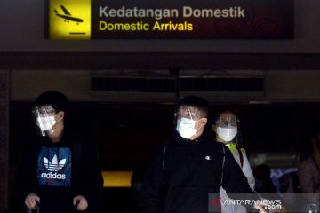 Penumpang pesawat rute domestik tiba di Bandara Internasional I Gusti Ngurah Rai, Badung, Bali, Jumat (31/7/2020). Pemprov Bali mulai membuka sektor pariwisata bagi wisatawan domestik pada Jumat (31/7) dengan sejumlah persyaratan yang mengedepankan aspek kesehatan dan kualitas untuk memberi pelindungan, kenyamanan dan keamanan bagi wisatawan yang berkunjung selama masa pandemi COVID-19. ANTARA FOTO/Fikri Yusuf/pras.
