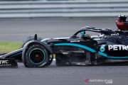 Pembalap Mercedes Lewis Hamilton melaju dengan mobil ban yang pecah saat lap terakhir balapan F1 2020 GP Inggris di Sirkuit Silverstone, Minggu (2/8/2020). Meski dengan kondisi ban pecah, Hamilton tetap berhasil menjadi juara balapan tersebut, mengungguli pembalap Red Bull Racing Marx Verstapen di posisi kedua dan pembalap Ferrari Charles Leclrec di posisi ketiga. ANTARA FOTO/Pool via REUTERS/Andrew Boyers/aww.