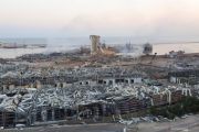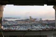 Suasana yang memperlihatkan lokasi pascaledakan di daerah pelabuhan Beirut, Lebanon, Rabu (5/8/2020). Perdana Menteri Hassan Diab menyatakan, sebanyak 2.750 amonium nitrat yang merupakan pupuk pertanian disinyalir menjadi penyebab insiden tersebut. ANTARA FOTO/Reuters- Aziz Taher/hp.