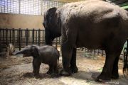 Seekor bayi gajah sumatera (Elephas maximus sumatrensis) bermain bersama induknya di kandang Taman Safari Prigen, Pasuruan, Jawa Timur, Rabu (12/8/2020). Bayi gajah yang lahir pada 14 Juli 2020 dengan berat 80 kg dan tinggi 85 cm dari indukan betina bernama Siska dan pejantan bernama Wahid tersebut menambah koleksi gajah sumatera di taman itu menjadi 20 ekor. ANTARA FOTO/Umarul Faruq/wsj.