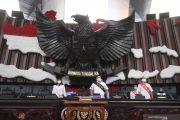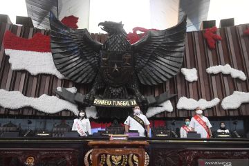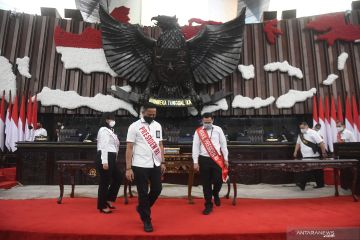 Suasana gladi Sidang Tahunan MPR dan Pidato Kenegaraan Presiden di Kompleks Parlemen, Senayan, Jakarta, Rabu (12/8/2020). Presiden Joko Widodo direncanakan menghadiri Sidang Tahunan MPR, Sidang Bersama DPR-DPD dan Pembukaan Masa Persidangan I tahun 2020-2021 DPR pada tanggal 14 Agustus 2020. ANTARA FOTO/Akbar Nugroho Gumay/wsj.