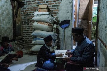 Guru mengajar anak-anak mengaji Al Quran di Desa Pasir Kupa, Lebak, Banten, Rabu (12/8/2020). Pemerintah Kabupaten Lebak memberikan dana insentif bagi guru mengaji sebesar Rp250 ribu per tahun guna mendukung program maghrib mengaji agar anak-anak mampu membaca ayat suci Al Quran. ANTARA FOTO/Muhammad Bagus Khoirunas/wsj.