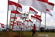 Warga memasang bendera Merah Putih di Poetoek Suko, Trawas, Mojokerto, Jawa Timur, Minggu (16/8/2020). Pemasangan ribuan bendera Merah Putih di tempat wisata tersebut guna memeriahkan HUT Kemerdekaan ke-75 RI. ANTARA FOTO/Zabur Karuru/aww.