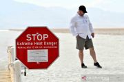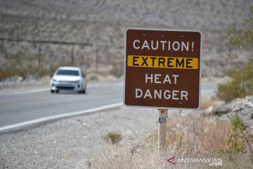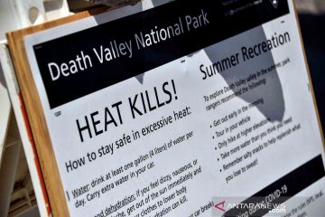Sebuah papan peringatan tentang bahaya cuaca panas ekstreme terpasang di Pos Pusat Pengunjung Furnace Creek, Taman Nasional Death Valley, California, Amerika Serikat, Senin (17/8/2020). ANTARA FOTO/REUTERS/David Becker/wsj.