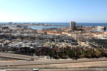 Puing-puing bangunan di Pelabuhan Beirut, Lebanon, Senin (17/8/2020). Kerugian yang dialami Lebanon pascaledakan di Beirut meningkat saat Perserikatan Bangsa-Bangsa (PBB) dan mitranya melanjutkan penilaian mereka. Kini, lebih dari 290.000 orang dilaporkan kehilangan pekerjaan, ujar seorang juru bicara PBB pada Senin kemaren. Dua ledakan dahsyat mengguncang Pelabuhan Beirut pada 4 Agustus, menggetarkan gedung-gedung di seluruh ibu kota Lebanon serta menewaskan sedikitnya 177 orang dan melukai 6.000 lainnya. ANTARA FOTO/Xinhua-Bilal Jawich/hp.