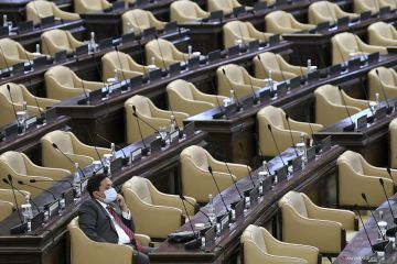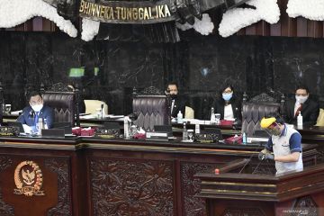 Anggota DPR menghadiri Rapat Paripurna ke-2 Masa Persidangan 2020-2021 di Kompleks Parlemen, Senayan, Jakarta, Selasa (18/8/2020). Rapat Paripurna yang dihadiri 76 orang secara fisik dan 230 orang secara visual tersebut beragendakan pandangan fraksi-fraksi atas RUU tentang Penanggungjawaban atas Pelaksanaan APBN 2019 yang dilakukan pemerintah. ANTARA FOTO/M Risyal Hidayat/hp.