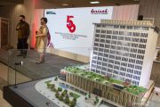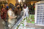 Menteri Badan Usaha Milik Negara (BUMN) Erick Thohir (tengah), Direktur Utama Sarinah Fetty Kwartati (kedua kiri), Komisaris Utama Sarinah Trisni Puspitaningtyas (ketiga kanan) dan Direktur Utama WIKA Agung Budi Waskito (kiri) mengamati maket gedung Sarinah dalam acara Pencanangan Perdana Transformasi Sarinah di Jakarta, Selasa (18/8/2020). Transformasi pusat perbelanjaan Sarinah ditargetkan rampung pada 17 Agustus 2021. ANTARA FOTO/Dhemas Reviyanto/hp.