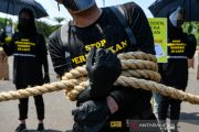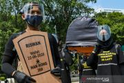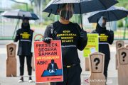 Aktivis buruh yang tergabung dalam Serikat Buruh Migran Indonesia (SBMI) dan Greenpeace Indonesia melakukan aksi damai di depan Istana Merdeka, Jakarta, Kamis (27/8/2020). Mereka menuntut Presiden Joko Widodo untuk segera mengesahkan Rancangan Peraturan Pemerintah tentang perlindungan anak buah kapal (ABK) asal Indonesia yang bekerja di kapal ikan berbendera asing. ANTARA FOTO/M Risyal Hidayat/nz
