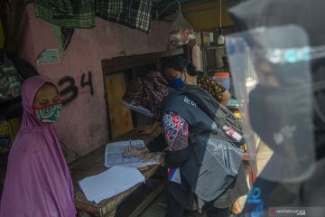 Pegawai Badan Pusat Statistik (BPS) melakukan sensus penduduk secara langsung ke permukiman warga di Kebon Bawang, Tanjung Priok, Jakarta, Selasa (1/9/2020). BPS melakukan sensus penduduk secara tatap muka mulai 1 September 2020 untuk mencatat penduduk Indonesia yang belum mengikuti sensus penduduk secara daring. Sebelumnya, sebanyak 54,1 juta penduduk terdaftar dalam sensus penduduk yang dilaksanakan secara daring sejak 15 Februari 2020 hingga 29 Mei 2020. ANTARA FOTO/Aditya Pradana Putra/wsj.
