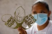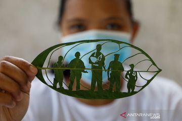 Seniman Filipina Mary Mae Dacanay memamerkan salah satu karya seni daunnya sebagai penghormatan untuk relawan dan petugas garis depan yang menghadapi wabah COVID-19, di rumahnya di Binan, Laguna, Filipina, Selasa (1/9/2020). Gambar diambil 1 September 2020. ANTARA/REUTERS/Eloisa Lopez/aa.