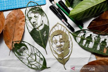 Beberapa karya seni daun seniman Filipina Mary Mae Dacanay difoto di rumahnya, di Binan, Laguna, Filipina, Selasa (1/9/2020). Gambar diambil 1 September 2020. ANTARA/REUTERS/Eloisa Lopez/aa.