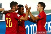 Pesepak bola Spanyol Ferran Torres (kiri) melakukan selebrasi bersama rekannya setelah berhasil mencetak gol ke gawang Ukraina dalam laga UEFA National League A group 4, di Stadion Alfredo Di Stefano, Madrid, Spayol, Minggu (6/9/2020). Spanyol berhasil mengalahkan Ukraina 4-0. ANTARA FOTO/Reuters-Sergio Perez/hp.