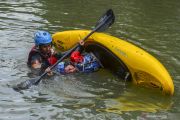 Pelatih Cabang Olahraga Kayak Asep Maksum Karnawisastra (kiri) melatih Heni Marlina di Sungai Ciwulan, Kota Tasikmalaya, Jawa Barat, Kamis (10/9/2020). Pegiat kayak yang tergabung dalam Tasikmalaya Kayak Team itu mulai berlatih selama pandemi COVID-19 untuk mempersiapkan diri mengikuti kejuaraan nasional dan Eddieline Games (EG) 2021 mendatang di Pekalongan, Jawa Tengah. ANTARA FOTO/Adeng Bustomi/hp.