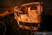 Sebuah mobil hangus saat terjadi kebakaran gudang limbah busa di Pasar Kemis, Kabupaten Tangerang, Banten, Kamis (10/9/2020). Kebakaran gudang limbah busa kasur tersebut diduga akibat korsleting aki mobil. ANTARA FOTO/Fauzan/pras.