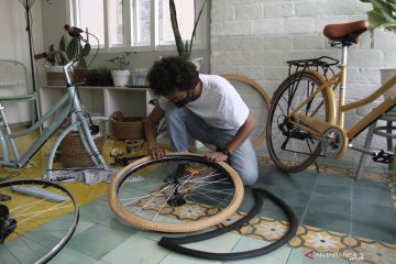 Nova Pamungkas merakit sepeda jenis "city bikeÓ, di bengkel Swaspeda miliknya di Gondomanan, Yogyakarta, Sabtu (12/9/2020). Sepeda jenis "city bike" bergaya klasik karya Nova Pamungkas tersebut mampu memproduksi frameset sebanyak 10-12 buah per bulannya dengan harga jual Rp.3 juta dan antrean pemesanannya hingga Juni 2021. ANTARA FOTO/Hendra Nurdiyansyah/hp.