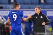 Pelatih Leicester City Brendan Rodgers (kanan) menyalami pemainnya Jamie Vardy setelah pertandingan melawan Burnley dalam laga pekan kedua Liga Inggris, di Stadion King Power, Leicester, Inggris, Minggu (20/9/2020). Leicester berhasil mengalahkan Burnley 4-2. ANTARA FOTO/Pool via Reuters-Laurence Griffiths/hp.