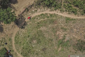 Pebalap sepada gunung mengikuti kegiatan "Lombok Enduro Bootcamp 2020" di Gunung Sasak Bike Park (GSBP) di Desa Kuripan, Kecamatan Kuripan, Lombok Barat, NTB, Minggu (27/9/2020). Kejuaraan MTB multi run enduro yang diselenggarakan oleh "Lombok Enduro Adrenaline Forum" (LEAF) tersebut diikuti oleh 160 pebalap sepeda gunung dengan jalur ekstrem dengan pemandangan bukit dan trek terjal serta batu-batu padas sejauh 1,4 km.ANTARA FOTO/Ahmad Subaidi/foc.