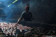 Pekerja membuat ikan lele asap di Pengasinan, Gunung Sindur, Bogor, Rabu (30/9/2020). Dalam satu hari UMKM kuliner ini bisa memproduksi empat sampai lima kuintal ikan lele yang dijual ke kawasan Jabodetabek dan hingga diekspor ke Nigeria dengan harga jual Rp100 ribu per kilogram. ANTARA FOTO/Muhammad Iqbal/wsj.