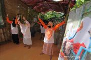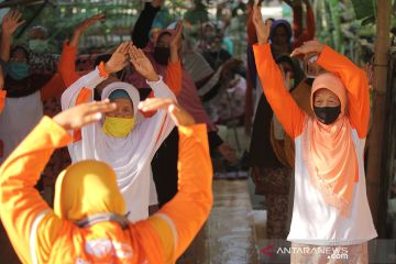 Sejumlah warga lanjut usia mengikuti senam lansia di Desa Berdaya Tegalurung, Balongan, Indramayu, Jawa Barat, Selasa (6/10/2020). Kegiatan senam lansia yang digagas Rumah Zakat tersebut bertujuan untuk menjaga kebugaran tubuh dan menciptakan lansia yang produktif terutama di masa pandemi COVID-19. ANTARA FOTO/Dedhez Anggara/pras.