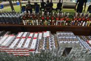 Petugas memperlihatkan sejumlah hasil penindakan Barang Kena Cukai (BKC) ilegal berupa minuman beralkohol serta rokok saat akan dimusnahkan di Kantor Pengawasan dan Pelayanan Bea Cukai (KPPBC) Pantoloan di Palu, Sulawesi Tengah, Rabu (7/10/2020). Sebanyak 614.660 batang rokok, 399 botol hasil pengolahan tembakau lainnya (HPTL) dan 287 botol minuman mengandung etil alkohol yang peletakan pita cukainya tidak sebagaimana mestinya atau ilegal dimusnahkan. ANTARA FOTO/Mohamad Hamzah/hp.