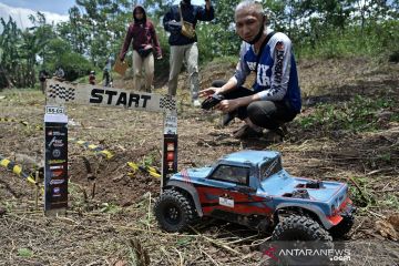 Peserta memainkan mobil offroad remote control saat mengikuti Kejuaraan RC Adventure Jabar Seri III di Bukit Alamanda, Kabupaten Garut, Jawa Barat, Minggu (11/10/2020). Ajang kejuaraan tersebut diikuti 30 peserta dari daerah Garut, Tasikmalaya, Bandung, dan Cirebon meliputi kelas Rookie, Scale Non Seeded, Scale Seeded A, Scale Seeded B, dan FFA. ANTARA FOTO/Candra Yanuarsyah/pras.