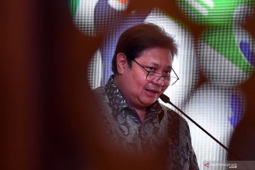 Menko Perekonomian Airlangga Hartarto menyampaikan pidato kunci dalam Rapat Koordinasi Nasional Pengendalian Inflasi Tahun 2020 di Kemenko Perekonomian, Jakarta, Kamis (22/10/2020). ANTARA FOTO/Sigid Kurniawan/foc.