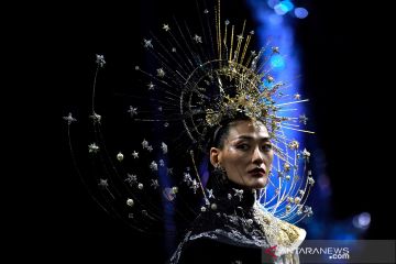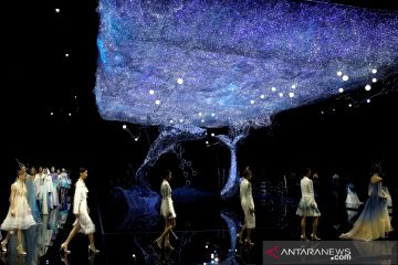 Model menggunakan busana karya Xiong Ying saat pagelaran busana Heaven Gaia Spring/Summer 2021 dalam rangkaian acara China Fashion Week di Beijing, China, Sabtu (24/10/2020). ANTARA FOTO/REUTERS/Tingshu Wang/foc.