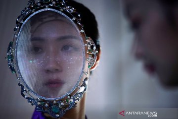 Seorang model bersiap menjalani gladi bersih pagelaran busana Heaven Gaia Spring/Summer 2021 karya Xiong Ying dalam rangkaian acara China Fashion Week di Beijing, China, Sabtu (24/10/2020). ANTARA FOTO/REUTERS/Tingshu Wang/foc.