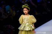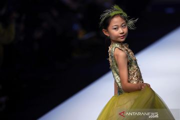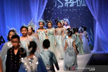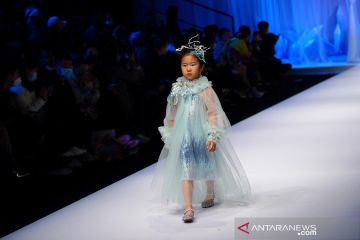 Model anak-anak membawakan busana rancangan Shuo Jiang pada gelaran China Fashion Week di Beijing, China, Senin (26/10/2020). ANTARA FOTO/REUTERS/Tingshu Wang/pras.