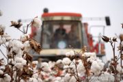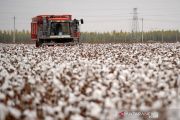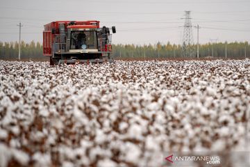 Mesin pemetik kapas beroperasi di sebuah ladang di Wangdaozhai, Kota Nangong, Provinsi Hebei, China utara, Selasa (27/10/2020). ANTARA FOTO/Xinhua/Mu Yu/pras.