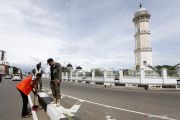 Pelanggar yang terjaring razia penegakan protokol kesehatan yang digelar tim gugus tugas percepatan penanganan COVID-19 menjalani hukuman sosial dengan menyapu jalan di Banda Aceh, Aceh, Rabu (28/10/2020). Memasuki libur panjang dan cuti bersama memperingati Maulid Nabi Muhammad SAW, tim gugus tugas percepatan penanganan COVID-19 Kota Banda Aceh Razia memperketat pengawasan dengan menggelar razia masker sebagai upaya meningkatkan kesadaran warga dalam menerapkan protokol kesehatan. ANTARA FOTO/Irwansyah Putra/hp.