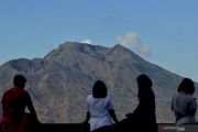 Wisatawan domestik menikmati pemandangan Gunung Batur dari kawasan wisata Kintamani, Bangli, Bali, Rabu (28/10/2020). Sejumlah objek wisata di Pulau Dewata mulai dikunjungi wisatawan domestik dari berbagai daerah yang memanfaatkan masa cuti bersama dan libur panjang Maulid Nabi Muhammad SAW. ANTARA FOTO/Fikri Yusuf/wsj.