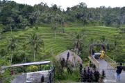 Wisatawan domestik mengunjungi kawasan Tegallalang, Gianyar, Bali, Rabu (28/10/2020). Sejumlah objek wisata di Pulau Dewata mulai dikunjungi wisatawan domestik dari berbagai daerah yang memanfaatkan masa cuti bersama dan libur panjang Maulid Nabi Muhammad SAW. ANTARA FOTO/Fikri Yusuf/wsj.