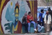 Wisatawan domestik berfoto dengan latar belakang pemandangan pedesaan sawah berundak (terasering) di persawahan Ceking, Tegallalang, Gianyar, Bali, Rabu (28/10/2020). Sejumlah objek wisata di Pulau Dewata mulai dikunjungi wisatawan domestik dari berbagai daerah yang memanfaatkan masa cuti bersama dan libur panjang Maulid Nabi Muhammad SAW. ANTARA FOTO/Fikri Yusuf/wsj.