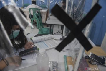 Seorang siswi memotret hasil belajarnya dengan telepon selularnya saat belajar secara daring memanfaatkan akses internet gratis dari Pemprov DKI Jakarta di Balai RW 02, Galur, Jakarta Pusat, Selasa (3/11/2020). Federasi Serikat Guru Indonesia (FSGI) merekomendasikan sejumlah usulan kepada Kementerian Pendidikan dan Kebudayaan (Kemendikbud) untuk mengubah sistem Pembelajaran Jarak Jauh (PJJ) terkait adanya tiga siswa yang mengakhiri hidupnya diduga lantaran depresi. ANTARA FOTO/M Risyal Hidayat/wsj.