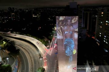 Acara pagelaran busana Sao Paulo Fashion Week diproyeksikan pada sebuah gedung di Sao Paulo, Brazil, Rabu (4/11/2020). Even dan karya dalam pagelaran tersebut dipertontonkan secara daring terkait pencegahan COVID-19. ANTARA FOTO/REUTERS/Amanda Perobelli/foc.