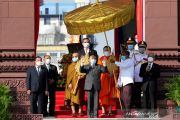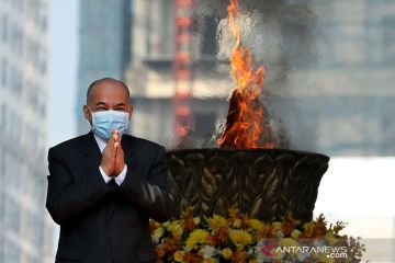 Raja Kamboja Norodom Sihamoni menghadiri acara peringatan Hari Kemerdekaannya di Phnom Penh, Kamboja, Senin (9/11/2020). Kamboja memperingati 67 tahun deklarasi kemerdekaannya dari pemerintahan kolonial Prancis. ANTARA/Xinhua/Sovannara/aa.