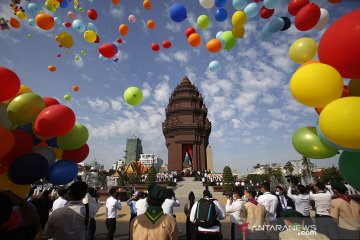 Sejumlah warga melepaskan balon dalam acara peringatan Hari Kemerdekaan Kamboja di Phnom Penh, Kamboja, Senin (9/11/2020). Kamboja memperingati 67 tahun deklarasi kemerdekaannya dari pemerintahan kolonial Prancis. ANTARA/Xinhua/Sovannara/aa.