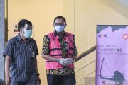 Tersangka mantan Direktur Utama PT Asuransi Jiwasraya Hendrisman Rahim (kanan) bersiap untuk menjalani pemeriksaan di gedung KPK, Jakarta, Selasa (10/11/2020). Hendrisman Rahim yang merupakan tahanan Kejaksaan Agung menjalani pemeriksaan di KPK terkait kasus dugaan korupsi pengelolaan keuangan dan dana investasi PT Asuransi Jiwasraya. ANTARA FOTO/M Risyal Hidayat/hp.