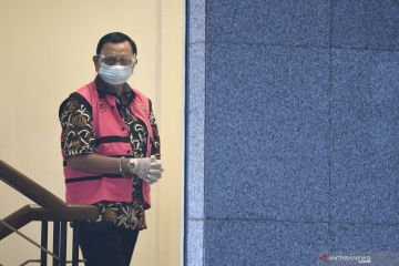 Tersangka mantan Direktur Utama PT Asuransi Jiwasraya Hendrisman Rahim bersiap untuk menjalani pemeriksaan di gedung KPK, Jakarta, Selasa (10/11/2020). Hendrisman Rahim yang merupakan tahanan Kejaksaan Agung menjalani pemeriksaan di KPK terkait kasus dugaan korupsi pengelolaan keuangan dan dana investasi PT Asuransi Jiwasraya. ANTARA FOTO/M Risyal Hidayat/hp.