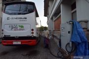 Petugas mengisi daya listrik pada bus di Kantor Dinas Perhubungan Provinsi Bali, Denpasar, Bali, Kamis (12/11/2020). Uji coba bus listrik yang digelar pada 8 November hingga 8 Desember 2020 secara gratis tersebut untuk diperkenalkan kepada masyarakat sekaligus sebagai upaya mengurangi polusi di pulau dewata. ANTARA FOTO/Nyoman Hendra Wibowo/hp.