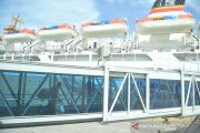 Penumpang bersiap menaiki KM Dorolonda yang akan diberangkatkan dari Terminal Penumpang Tanjung Priok, Jakarta, Minggu (15/11/2020). PT Pelni menerapkan protokol kesehatan yang ketat dan sudah diverifikasi oleh Komite Nasional Keselamatan Transportasi (KNKT) guna memastikan penumpang angkutan laut terhindar dari COVID-19. ANTARA FOTO/Akbar Nugroho Gumay/aww.